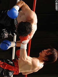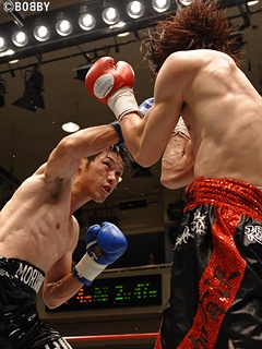 試合:立ち上がり、森下がジャブで距離を詰めワンツー連打で攻め込み先手を狙う。2R、岩渕も右フックをヒットさせると立て続けに右ボディ・左ストレートで反撃。ラウンド終了間際にはワンツー連打を打ち込みポイントアウト。森下もワンツーで切り込み距離を詰めたいが、岩渕の右ボディをクリーンヒットされロープに追い込まれてしまう。ここで森下はワンツーを打ち返すも、岩渕の右ボディ・ワンツー・右フックがヒットしグラつく森下。追い打ちの右フック・左ストレートを浴び、森下が大きくよろめくとレフェリーが危険と判断し試合を止めた。