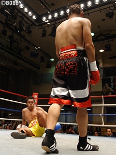 試合:向かい合うとサウスポーのペットナムエークが鈴木より頭一つ分小さい。鈴木は相手の動きを見極めるようにジャブで牽制。必要以上は打ち込まないが2R、早くも距離を把握しジャブから右ストレートを餌に、入って来たペットナムエークに左フックをヒットさせダウンを奪う。立ち上るペットナムエークをジャブでロープに詰めるが、ペットナムエークも頭を左右に振って鈴木のワンツーをディフェンス。しかし、鈴木が冷静に動きを読み左フックで再びダウンを奪う。3R開始直後、鈴木の狙いすました右ストレートを顎に打ち込まれ、膝から崩れるようにこの試合3度目のダウン。カウントを数える事無くレフェリーが両手を交差。鈴木が危なげなくTKO勝利を奪い、来年のチャンピオンカーニバルに弾みを着けた!!