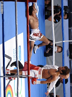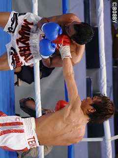 左ストレート、左ボディストレートを確実にヒットさせポイントリード。6R、左ボディでセーンヒランを下がらせ、懐に入り左右ボディ、ガードが下がったところに最後は左ストレートをアゴに浴びせダウンを奪い、レフェリーストップとなった。