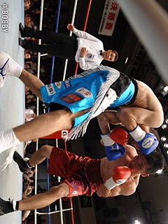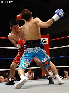 試合:立ち上がり益田がガードを固めプレスを掛けると、右ストレート・左アッパーで森島に攻め込み主導権を奪いにかかる。2R、今度は森島がプレスを掛け、ワンツー・右ストレートで仕掛けるとここで益田は下がってしまい、このプレスで主導権を奪った森島は右ストレート・左フックでポイントを奪う。左ボディで盛り返したい益田であったが、森島がプレスを効果的に仕掛け、右ストレートで下がらせ、左フックをクリーンヒットした所でレフェリーが試合を止めた。