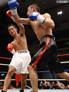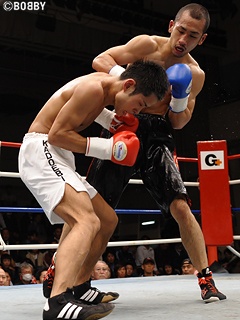 試合:今関が左右フックで攻め込むが、緒方は巧みにブロック。2R、緒方は今関の左右フックに右ストレートをカウンターで打ち込む。この攻撃で今関は膝を付いてしまいダウンを取られてしまう。今関は左右フックでポイントを奪い返したいが、緒方も踏み込む為にクリンチが多くなってしまう。互いにクリーンヒットを奪えない中、緒方が単発ながら右ストレートをヒット。ダウンポイントを奪った緒方が判定勝利。