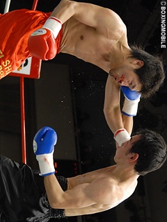 試合:立ち上がり、両者ワンツー・フックを打ち込むがクリーンヒットは奪えず。有馬は左ストレート、今井は右ストレートを軸に打撃戦となるも、両者決定打を奪えず試合は判定に。ジャッジは3者共38-38のドロー裁定ながら、優勢ポイントを今井が獲得し勝者扱いとなった。