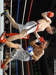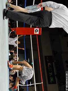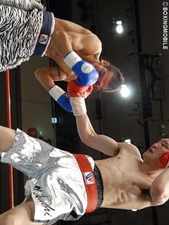 試合:相馬が低い体勢からプレスを掛けるも、サウスポー菊地のジャブから左アッパー・右フックで捌かれてしまう。菊地は左右に動き、的確にジャブ・左アッパーをヒットさせ、3Rには左アッパーでダウンを奪う。相馬は左右ボディで菊地をロープに詰めるが、右フックでサイドに回られ距離を取られてしまう。終始、菊地が相馬のプレスにジャブ・左アッパー・右フックをヒットさせポイントを奪い、判定勝利。