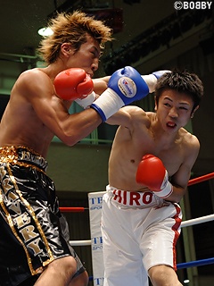 試合:ランカー初挑戦の橋本は思い切りよく飛び出すが、松崎は落ち着いて捌きスィング気味の右ストレートをヒット。左右をまとめる松崎は1R終了のゴングと同時に右ストレートで早くもダウンを奪う。2R、橋本はプレスをかけ手数を出すが、やはり松崎の右ストレートに対応できず連続ヒットを許してしまう。3R、冷静な松崎はカウンターを取るなど思い通りのボクシングで試合を進め、橋本をロープに詰めボディ連打からパンチをまとめたところでレフェリーストップとなった。