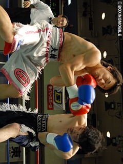 試合:立ち上がり、若生はガードを固め左右フックで距離を詰める。接近戦に持ち込みたい若生に古橋は右ストレートを基点に左フックを織り交ぜ応戦。しかし次第に古橋も踏み込んでしまい、接近戦の展開に。互いに入り際、離れ際に左フックをクリーンヒットさせるが主導権を奪う事は出来ず。古橋は左ボディ・右ストレートをヒットさせると、若生も低い姿勢から左フックを打ち返す打撃戦となる。若生は身体を振りながら左フック・右ストレートをヒットさせるも単発となり、中々連打に繋がらず。対し古橋はジャブ・ワンツーで前に出てポイントを奪う。終盤打撃戦となり、古橋がワンツー・左ボディ・左フックと手数で前に出るが、若生も単発ながら左フックを返す。両者決定打を奪えぬまま判定に持ち込まれたが、手数・ヒット数で僅かに古橋が上回り、1P差の勝利となった。
