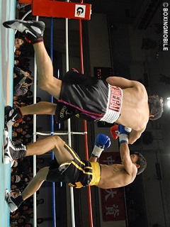 試合:日本タイトル前哨戦の亀海。ソラノがゴングと同時に思い切り良くワンツーで切り込んで来る。亀海はスウェーでかわそうとするが、予想以上に伸びて来るソラノのワンツーを被弾。が、亀海はそれ以上の攻撃を許さず、ジャブで距離を計り的確に右ストレートをヒット。2R、ソラノがワンツー・左フックで攻め込むが、亀海が的確に捌きソラノの打ち終わりに左フック・右ストレートをクリーンヒットさせると、ソラノは膝を着いてしまう。このダウンでソラノは立ち上がる事無く10カウント。亀海が貫禄の勝利でデビューから無敗の14連勝を上げた。