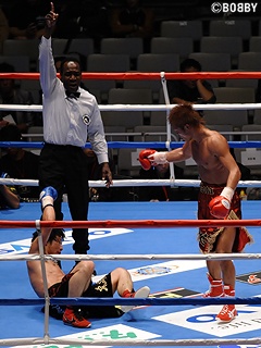 試合:立ち上がりから自分の距離でどんどん打って出る小口。対する長崎は相手の空振りにアッパーやボディ、しつこくワンツーなどを見せながら応戦するも、6R、接近戦で小口が放ったワンツー、右フックでダウン。レフェリーストップで小口が初のTKO勝利。