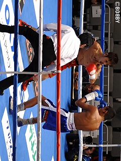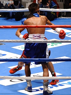 試合:スピード感ある粉川のジャブが冴える。上下に散らしてジャブを出し、ボディから容赦ない連打で、相手はなすすべなし。2度目のダウンでテンカウント。レベルの差を見せつけた。