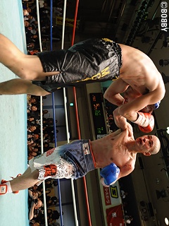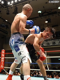 試合:東洋太平洋ライトフライ級正規王者・和田峯VS暫定王者・家住の一戦。1R、ジャブでリズムをつくる和田峯に対し、左フックを投げたり、ワンツーからアッパーとスピード感ある攻撃をみせる家住。2分経過あたりで、ジャブから距離を詰める和田峯に右フックを合わせてそのまま左ボディ。ここで和田峯がダウン。立ち上がって打ち合いに出るも家住の連打に2度目のダウン。2R以降も的確なワンツー、相手のガードを縫うようなアッパーなど、ショートで連打するなど多彩なパンチを見せる家住。中盤、頭を振り、体を揺らしてジャブで詰めていく和田峯。次第に家住の足が止まりつつあるなか、さらにしっかり脇をしめて粘り強くジャブとフットワークで追い詰めていく。10R、ゴングと同時に飛び出す和田峯がジャブから左フックを放ち、家住を捕らえるも仕留め切れない。11、12Rもジャブから左右の強打を振るが、中盤までの家住のポイントを縮めるまでには至らず、家住が正規王者となった。