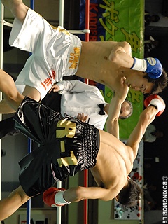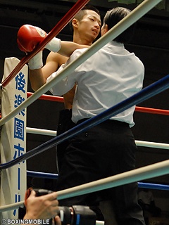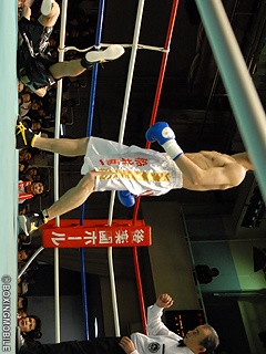 試合:ゴングと同時に工藤がワンツーで攻め込むも、船井がこの攻撃をディフェンスし距離を保ちジャブ・左フックをヒット。工藤は2Rに入っても積極的にジャブ・ワンツーを打ち込むが、船井はジャブでロープに詰め、右ストレートを繰り出すと工藤にクリーンヒット。工藤は弾かれるようにダウン。何とかカウント7で立ち上がるも足元がふらついてしまい、レフェリーストップとなった。