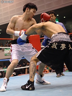 試合:板垣の打ちおろし右フック一発。上野は立ち上がるも、足元がふらつきカウントアウト。
