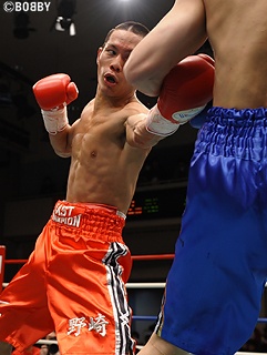 試合:終始、頭を振り、フェイントを入れながら下からジャブを突き上げ、もぐってボディ。そこから回転よく右フック、右ストレートと放った野崎に軍配が上がった。