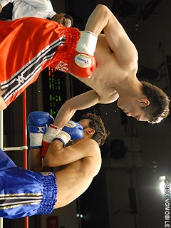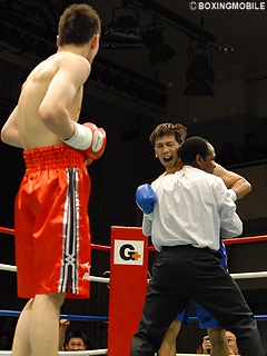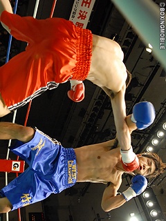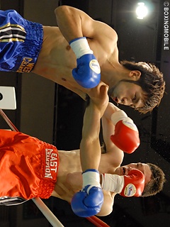 試合:サウスポー同士の一戦。菊地が左ストレートをヒットさせ一気に主導権を掴む。スピードと的確性で上回る菊地は、ガードを固めてプレスを掛ける竹内をジャブで牽制。左ストレートをカウンターで打ち込むと、竹内の膝が大きく揺れ、レフェリーが危険と判断し試合を止めた。菊地は技能賞を獲得。