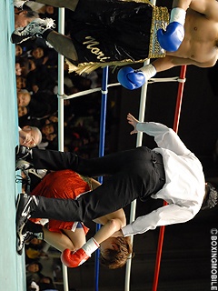 試合:田口はリーチを活かしジャブ・ワンツーで距離を保つが、田中が素早いステップインで左ボディ・右ストレートをヒットさせ主導権を引き寄せる。2R、田中が距離を詰め右ストレートで田口の膝を落とし、さらにラッシュを掛けると田口はクリンチに逃れる。ここで、田中はこのクリンチへのブレイクと同時、田口の後頭部へ右フックを打ち込んでしまう。この一撃で田口は膝から崩れダウンとなるが、この攻撃はブレイク後の加撃と見なされ、田中は減点1。田口には1分間の休憩が与えられる。しかし、田口のダメージは大きくここで試合終了。田中は反則失格となり、互いにシコリの残る一戦となってしまった。