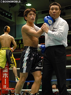 試合:ゴングと同時に上野が右ストレート振り抜くと福島は冷静にディフェンス。互いにジャブ・ワンツーで牽制し主導権を引き寄せようとする中、福島のストレートに合わせ、上野が左フックを打ち込む。この左フックが顎を捉え、福島は膝から崩れ落ちダウン。一度は立ち上がりかけた福島だが、再び尻餅をつき、無常の10カウント。上野が復帰戦をKO勝利で飾った。