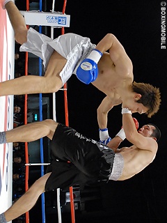 試合:立ち上がりから岳が上体を小刻みに振り、ジャブ・ワンツーで攻め込む。リーチで勝る田島は右ストレートで迎え打つも、サウスポー岳が踏み込み、左ストレートを的確にヒット。早くも距離とタイミングを掴んだ岳は、2Rに入るとワンツーでプレスを掛け、田島を下がらせると左ストレートをクリーンヒット。この一撃で田島は大の字にダウン。レフェリーはカウントを数える事無く試合を止めた。