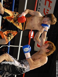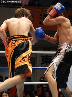 試合:1R、早くも仕掛ける両者。素早いステップインでワンツーフックを打ち合う。ここでゴツンと鈍い衝撃音とともに清水が右膝をマットにつき頭を押さえる。一旦はダウンとなるが、清水はバッティングをアピール。レフェリーが小林に振り返ると、小林も左即頭部から激しい出血。レフェリーはバッティングをコールし、両者ドクターチェック。序盤から互いに左即頭部を大きくカットしてしまう。2R、ワンツーで詰める小林に清水が右ショートストレートをカウンターで打ち込みダウンを先制。このダウンで主導権を握った清水は的確にジャブを打ち込み右ストレートに繋ぐ。小林も左フック・右ストレートをヒットさせるが、清水のジャブに単発で終わってしまう。それでも前に出て詰める小林だが、度々頭が当たってしまい、4Rにはバッティングで減点1。清水は的確にジャブをヒットさせ、自分のリズムを造り、小林を前に出さず、右ストレートを上下に打ち分けポイントを奪う。小林は清水のジャブ・カウンターに封じ込められてしまう。6R終了間際、清水は右ストレートからワンツー連打を打ち込み、小林をロープに押し込む。勝負の7R、清水が再びジャブからワンツーフックをヒットさせ小林をロープに詰め、ワンツー・ワンツーフックをまとめると、ここでレフェリーが試合をストップ。清水がV3防衛に成功した。