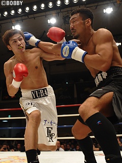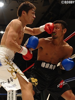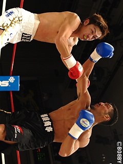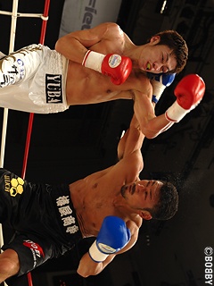 試合:約2年振りの再戦。前戦は渡部がダウンを先制するも、湯場が1R大逆転KOで渡部を破った。前回の借りを返すべく、渡部が勢い良くワンツーで仕掛ける。湯場は冷静に対処し、左ストレート・右フックで渡部の膝を落とすが、渡部はクリンチで1Rを凌ぐ。2R、渡部が再び仕掛け、ワンツーで湯場を後退させると右フックをヒット。3Rにはプレスの渡部がワンツーフックをクリーンヒットさせ、左ストレートを上下に打ち分け、一気に左ストレート・右フック・右ボディをヒット。湯場をグラつかせ、さらにプレスを掛ける渡部だが、湯場はサイドに動いてダメージの回復を図る。渡辺の優勢の展開となるが、5Rに試合が動く。湯場が渡部のステップインに合わせ、左アッパーをカウンター気味にクリーンヒットさせると膝が大きく揺れる渡部。ロープに詰められ、何とか左ストレートを返すも大降りになり、湯場のワンツー・左ストレート・右フックを浴びてしまう。大きく泳ぐ渡部に湯場の左ストレートが突き刺ささると、後方に仰け反った渡部をレフェリーが堪らず抱きかかた。前戦に続き湯場は大逆転KO勝利となった。