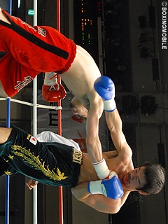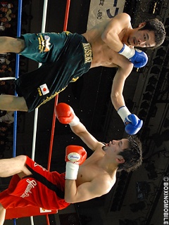 試合:互いにワンツーを繰りす出も鈴木が右ストレートで先制し、立ち上がりから主導権を奪う。中真は中間距離からジャブ・ワンツーで攻め込むが、鈴木がガッチリとブロック。中真の打ち終わりに左フック・右ストレートを的確に打ち込みポイントアウト。5R終了間際には鈴木の右ストレートが顔面にクリーンヒットしグラつく中真。鈴木は追い打ちのワンツーで襲い掛かるも中真はゴングに救われる。終盤、ドッシリ構える鈴木に中真がワンツー・左ボディで攻め込む。これに鈴木は素早いワンツーをクリーンヒットさせ中真を追い詰めるが、中真はダウンを拒む。鈴木は中真の攻撃を巧みにブロック。打ち終わりに左フック・右ストレートを打ち込み、中間距離では素早いワンツーをヒット。常にポイントを奪い続け判定勝利となった。