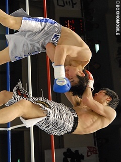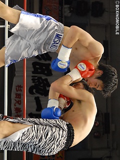 試合:横山は足を使い、ワンツーで出入りのボクシング。対する深谷はプレスをし続けボディ主体の攻め。ワンツーを強打されても前に出る果敢さを見せる。4R、しつこくプレスを掛ける深谷に横山はホールドからレスリング行為で減点1。それでも横山は接近戦でボディ、ショートアッパーなど常にペースを握り続け判定勝ちを収めた。