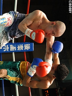 試合:1R、イフェンディーは身体を振ってジャブから左ボディと手数。ガードを固めジャブを出す家住は引いたところにストレートをもらい、押されるようにダウン。ダメージは無いが、イフェンディーはさらに飛び込みワンツー、ボディで攻める。2R、今度は家住の左ボディ、ストレートがヒットし仰け反るイフェンディー。さらにワンツーをクリーンヒットさせイフェンディーの膝を折ると、コーナーでたたみかけるがここは仕留めきれず。以降、ヒットの奪い合いとなるが、家住はいまいちリズムを掴めず、5Rには偶バツで右目上をカット。出血が多く、6Rのドクターチェック後、レフェリーが試合を止めた。1Rにダウンを奪われた家住だが、他ラウンドはポイントを奪い、判定2-0で2度目の防衛に成功した。