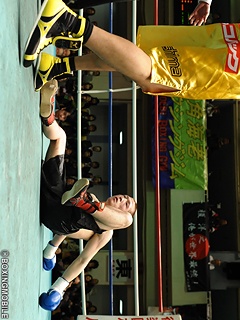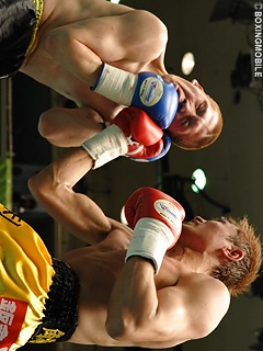 試合:開始と同時に低く入り左右フックで接近戦に持ち込む阿部は、早くもバッティングで減点1。再開後、詰める阿部に蓮沼が左フックでダウンを奪う。阿部は2R以降、接近戦に持ち込み勝機を切り開こうとするが、蓮沼もこれに応戦。我慢比べの打撃戦となり、互いに左右フック・右ストレートをヒットさせ相手の膝を落とさせるが蓮沼に凱歌。