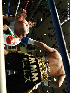 試合:昨年6月に両者は対戦。田中が3RKOで日本ランキングを手にした。島崎にとってはリベンジ戦となる。立ち上がり、田中の左フックがオープニングヒットとなり、ジャブで距離を測る田中はワンツーで島崎からダウンを先制。3R以降田中がジリジリとプレスを掛けるも、島崎はガードを固め足を使い接近戦を許さない。それでも田中が強引に前に出て右ストレート・左フックをヒットさせると島崎は徐々に下がってしまう。6R、距離を掴んだ田中の右ストレートがクリーンヒットすると、島崎の腰がストーンと落ちるが、クリンチで凌ぐ。しかし田中が振り解き、猛然と島崎に襲い掛かる。ワンツー・右ストレート・左フックをクリーンヒットさせ、島崎をコーナーに釘付け。ここでレフェリーが割って入り試合を止めた。10ヶ月振りの再戦も田中のKO勝利となった。