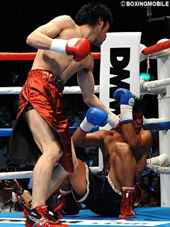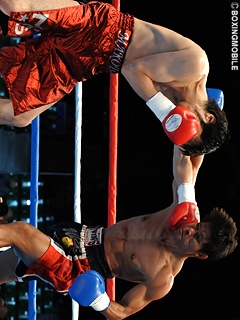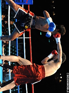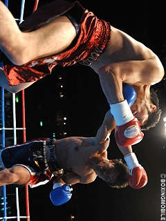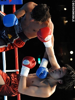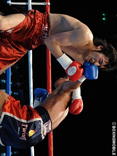 試合:1Rから距離を保ちながら大振り気味の右フックを狙うに対しカウンターを合わせる吉田。試合は4Rに右カウンターで吉田がダウンを奪った後、左ボディ2発でKO勝ち。
