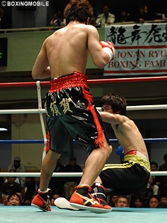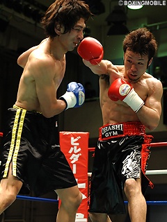 試合:序盤から打ち合い。2Rの打撃戦の中、原の左フックが鈴木のアゴ先を捉え、鈴木はマットに手を付きダウン。ダメージの浅い鈴木は3R、今度は右ストレートでダウンを奪い返す。しかし4R、原がジャブで鈴木をロープに下げ、ワンツーでダウンを奪い勝利を引き寄せるが、鈴木は立ち上がり猛然とラッシュ。4R終了直前、鈴木の右ストレート・左フックがクリーンヒットし、原の膝が大きく沈みダウンかと思われたが、ここは原がクリンチで逃れる。倒し倒されの打撃戦は、判定2-0で原が振り切り決勝に進出。