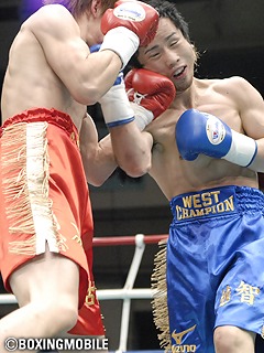 試合:前半から両者打ち合いに。互いの右ストレートが共にクリーンヒット。越智の左フックに対し、古橋がワンツーで応戦。4R、古橋がワンツーをクリーンヒットさせると越智が腰から崩れ、痛恨のダウン。ここは立ち上がりゴングに救われる。最終5R、越智がポイントを取り返すべく前に出るが古橋も応戦し判定に。ダウンを奪った古橋が判定3-0で勝利。古橋は東日本新人王敢闘賞に続き、今回も技能賞を受賞した。古橋「ワンツー以外は良い所が出なかった。まだランカーの実力は無い。実力を付け上を狙います」