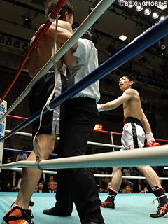 試合:ゴングと同時に大久保が、強振かつスピードの乗ったジャブ、ワンツーをヒットさせる。山内も返すが打ち負けてしまい、レフェリーが試合を止めた。