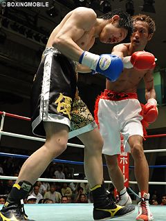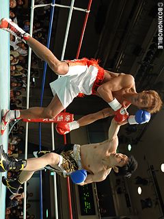 試合:1Rから早くも打撃戦に。山元がスウィッチし、左ストレートをヒットさせ立ち上がりの主導権を奪う。荒井は詰める山元にジャブ・ワンツーで距離を保ち、徐々に主導権を引き戻す。中盤、荒井がミドルレンジからノーモーションの右ストレートをヒットさせポイントを奪う。山元は距離を詰めることが出来ず、6Rには荒井の右ストレートで膝を落とし掛ける。7R、荒井が勝負に打って出る。右ストレートをヒットさせると、下がる山元にワンツー・左フックでラッシュ。ここで山元陣営からタオルが投げ込まれ、荒井が7RTKO勝利を奪った。