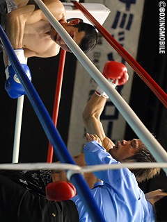 試合:松橋は左足アキレス腱断裂から約2年半振りの復帰戦。1R、互いにジャブで仕掛ける両者。しかし、身長とリーチで上回る田島がジャブ・ストレートをヒットさせると松橋は尻餅を着く様にダウン。ここは立ち上がり、松橋はラウンドを凌ぐ。2R、サウスポー松橋は1Rのダウンで目が覚めたのか一気に攻め込み、左フックがヒットすると田島の膝が落ちる。ここを見逃さず、ワンツーで田島をロープに詰めると怒涛のラッシュ。ワンツー・右フック・左ストレートがヒットすると、田島は崩れ落ちる様にダウン。立ち上がろうとするが、田島の足元が定まらずここでカウントアウト。松橋が先にダウンを奪われるも見事逆転KOで復帰戦を飾った。