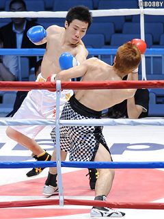 試合:船井がプレスを掛け、左を上下に打ち分け主導権を奪う。上間は下がる場面が多く、船井の右ストレートを被弾し、判定負け。