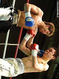 試合:伊藤がゴングと同時に前進し、左右フック・ワンツー連打で接近戦に持ち込む。会田は距離を取りたいが、伊藤の前進を止めることが出来ずロープに押し込まれる。3R、伊藤が左右フックで会田を再びロープに詰めると、ワンツーの連打で会田に反撃の隙を与えない。さらにワンツーで攻め続けると会田は防戦一方になり、レフェリーが堪らず試合を止めた。