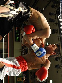 試合:優勝候補の横山は、4回戦離れした的確な強打のラッシュでここまで3戦連続1RKO勝利。開始から猛ラッシュの横山は、回転の良いワンツーから左右フックをボディに叩きこみ、高畑をロープに釘付け。早くも終りかと思えたが、高畑がリズムを狂わされながらも粘りを見せ、右ストレート、左ボディを返すと横山の動きが鈍る。2R、横山の連打に再びコーナーに捕まる高畑だが、左ボディを軸に返すと、打たれ慣れていない横山のスピードが明らかに落ちる。打ち合いとなるが、手数の落ちた横山に高畑が連続ヒットで勢いづくと、レフェリーが堪らず試合を止めた。