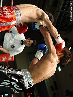 試合:中野の伸びのあるジャブ、右ストレートが山都を捕える。ジャブ、ワンツーの山都は距離が合わず、接近して左ボディに的を絞る。一旦は手数が落ちた中野だが、再び盛り返すと4Rは打撃戦に。最終5R、中野が手数・ヒットで押し切り、レフェリーストップとなった。