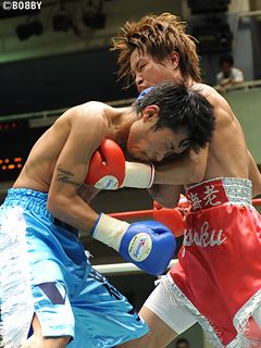 試合:積極的にジャブを繰り出し右ストレートで先制の濱田は、小刻みにステップを踏み思い切り良くワンツーで飛び込む。このワンツーに合わせ、石川も左ストレートを打ち返す。濱田はワンツーで詰めるも、石川が右フック・左ストレート返し、クリーンヒットで上回り濱田を振り切った。