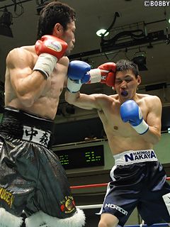 試合:サウスポー丸山が右ジャブから左ロングフックをヒットさせ、立ち上がりの主導権を奪う。中森は、丸山の距離と左ロングフックになかなかリズムを掴めない。後半、中森がジャブ・左フックをヒットさせ本来のリズムを取り戻すと、素早いジャブ・左アッパーを的確にヒットさせポイントを挽回。中森が丸山を退け決勝へ。
