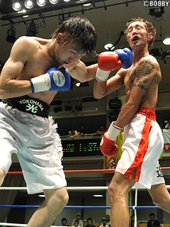 試合:荒井がロングレンジのジャブで距離を計り、右ストレート・左フックで主導権を引き寄せる。しかし3R、渥美がジャブで荒井を下がらせ、右ストレートでダウンを奪う。立ち上がる荒井は4R、ジャブを的確にヒットさせ右ストレート・左フックで反撃。ここから打撃戦となり一進一退の攻防に。6R、渥美が右ストレートから荒井をロープに詰め、ワンツー・左フックを打ち込む。荒井も最終8R、ワンツー・左フック・左ボディで渥美を後退させる。試合は判定に委ねられるが、手数・ヒット数で上回った荒井がポイントを挽回し、判定勝利を奪い獲った。