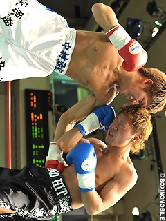 試合:開始から頭をつけて接近戦。中川がワンツー、左右アッパーと手数を出せば、中村も負けずにワンツーから上下への左右フックを打ち返す。我慢比べの圧し合いはラストまで続き、中川が手数で打ち勝った。