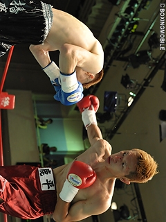 試合:1R、距離をはかり、ミドルから手数を出す両者。徐々に河野が圧し始めると、右ストレート、ワンツーをヒット。続く2Rも河野が右からワンツーフックを連打で打ち込み、レフェリーストップを呼び込んだ。
