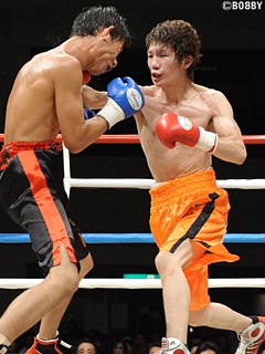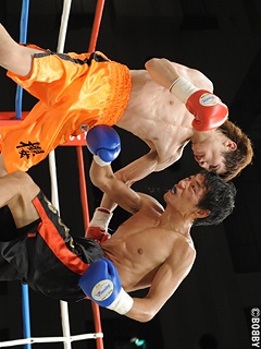 試合:岡田は距離を取り、ワンツーからくっついては左右にボディ。2Rにはプレスの坂を右ストレートでグラつかせる。3R、坂はバッティングで減点1。以降、打撃戦となり、ショートの打ち合いでは坂も左フックで岡田の膝を折る。が、手数は岡田で判定勝ち。