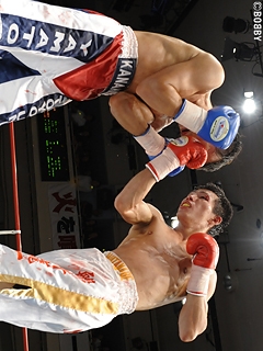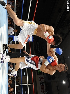試合:立ち上がり、ジャブ・右ストレートで距離を探り合う両者。2R終了間際、船井の右ストレートに椎野の膝が一瞬落ち掛ける。椎野も3Rに左ボディ・左フックを上下に打ち分け、船井に主導権を握らせない。接近戦で椎野が右アッパー・左フックをヒットさせれば、船井がミドルレンジで右ストレート・左フックをヒットさせる打撃戦に。試合は判定となるも、有効打で船井がポイントを奪い、3戦全勝(3KO)の椎野を下した。