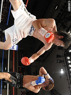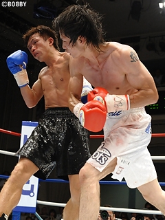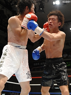 試合:開始と同時に福島がやや大降りな左フックで仕掛けるが、王者・芹江はスウェーでディフェンス。2R、芹江が早くも独特のリズムと間合いで詰め、福島に打ち下しの右ストレートをヒットさせペースを引き寄せる。福島は左フック・右ストレートで距離を詰めたいが、芹江にスウェーからカウンター気味の右ストレート・左フックを打ち込まれる。4R、芹江の右ストレートに福島は痛恨のダウン。主導権を握った芹江は、右ストレート・左フックを的確にヒットさせ福島を追い込む。7R、芹江の右ストレートに大きく弾かれる福島。ここを芹江が見逃さずラッシュ。右ストレート・右アッパー・左フックの連打で福島を棒立ちにさせる。ダメージを負った福島は、7R終了時のインターバルに棄権を申し出て試合終了。芹江が先輩王者・福島を破り、2度目の王座防衛に成功した。