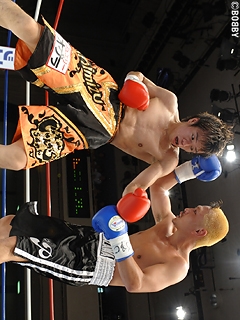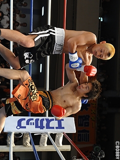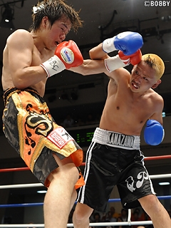 試合:ジャブ、ストレートで距離を取る清水に対し、金沢は左右フックでプレスを掛けるが清水の足に追いつくことが出来ない。距離を掴んだ清水は、右ストレート・右アッパーをヒットさせ早くも主導権を握る。清水は左ボディを織り交ぜた右ストレートを的確に打ち込み、5Rには金沢の土俵である接近戦を仕掛ける。清水は金沢の左右フックを被弾するも、右ストレート・右アッパーを打ち返し打撃戦の展開を見せるが6R、清水のワンツー・右アッパーが金沢の顔面を捉えると、ダメージの濃い金沢にセコンドからタオルが投入。清水がTKO勝利で4度目の王座防衛に成功した。