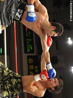 試合:ゴングと同時に小出が思い切り良く左ストレートを打ち抜くも、中森はディフェンス。体勢を立て直した中森はジワジワとプレスを掛けジャブ・右ストレートで小出をコーナーに詰める。ここで中森が右ストレート・左アッパーでダウンを先制。2R、ダウンを奪われた小出は上体を振ってプレスを掛けるが、中森は冷静に距離を保ちジャブ・右ストレートで序盤のリードを奪う。5R、小出が反撃に転じる。左ストレートをヒットさせ前に出ると、中森に右フック・左ストレートを打ち込む。中森は6R、ジャブから右ストレート・左アッパーで小出をロープに詰め、ジャブでリズムを掴むと7R、右ストレートを的確にヒットさせ小出を追い込む。ラウンド終了間際、右ストレートでロープに詰めると、左アッパー・ワンツーで小出の顔面を後ろに弾くと同時にレフェリーストップを呼び込んだ。中森が第1回大会に続き、再びライト級優勝を成し遂げた。