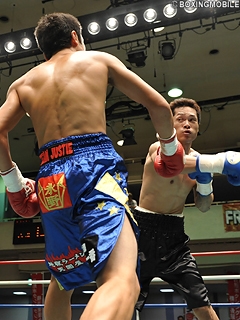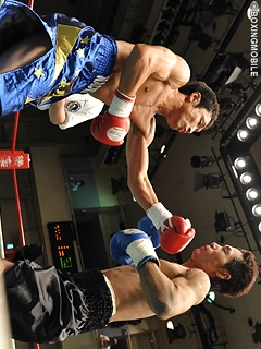 試合:ゴングと同時に前に出る両者。ここで飯田の右ストレートが和田のテンプルにヒットし、和田はしゃがみ込むようにダウン。立ち上がる和田に飯田がワンツーで詰める。ロープを背負う和田にワンツー・左フックがヒットし、和田の膝が落ちる同時にレフェリーが試合を止めた。