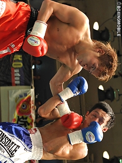 試合:身長・リーチで上回る豊川が、ロングレンジのジャブ・ワンツーで距離を取る。対する設楽は、プレスを掛け距離を詰めたい。3R、設楽が左フックで強引に飛び込むと右ストレートが豊川の顔面にヒット。豊川も4R、ジャブで距離を計り右ストレート・ワンツー連打で反撃に出ると、後半は両者打ち合いに。設楽が左フック・右クロスを強打で打ち込めば、豊川もワンツー連打・右ストレートと手数で応戦。フルラウンドを戦うも両者決定打を奪う事が出来ず、ドロー判定となった。