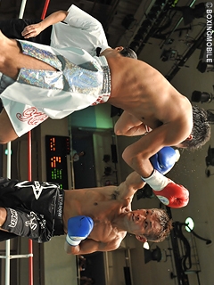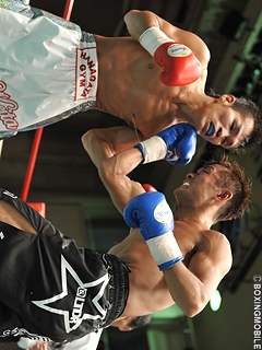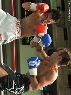試合:スタートから積極的に打ち合う両者。伊藤の左フックがヒットすれば、竹内も右ストレートを返し打撃戦に。しかし、伊藤が飛び込み様の左フック・右クロスを竹内に打ち込み序盤の主導権を奪う。中盤、竹内は右ストレート・左ボディで挽回を計るが、両者は踏み込みクリンチが多くなってしまう。さらに終盤も荒れ模様に。互いの右ストレート・左フック・左ボディがヒットし激しい打ち合いとなるが、クリンチの状態からレフェリーがストップを掛けたところに伊藤が加撃を加えてしまい痛恨の減点1。しかし竹内も8R、打ち合いの中から伊藤の後頭部に攻撃を加えてしまい、ラビットパンチでこちらも減点1。伊藤はこの攻撃でしゃがみ込んでしまい1分間のインターバル。再開後、伊藤が猛然とラッシュ。右クロス・左フックで竹内の膝を落とすも試合は判定に。互いに減点1となったが、竹内がクリーンヒットで上回り荒れ試合を制した。